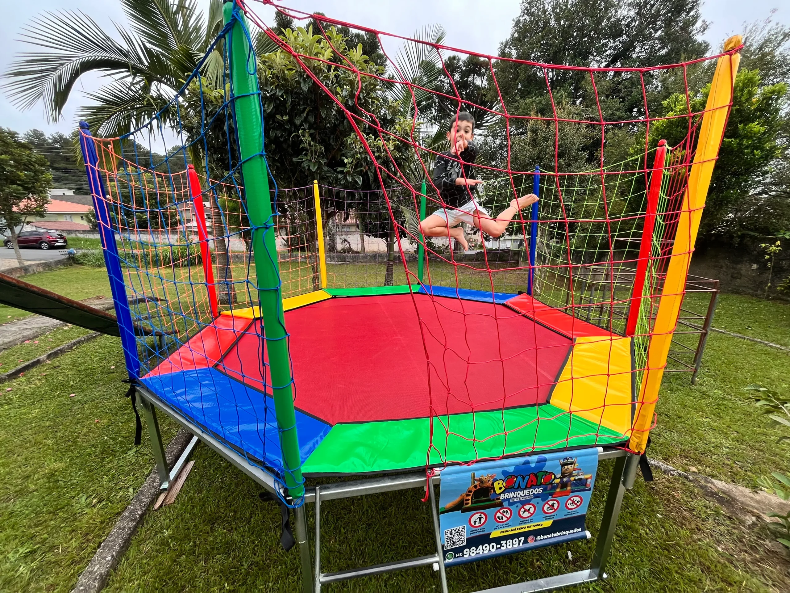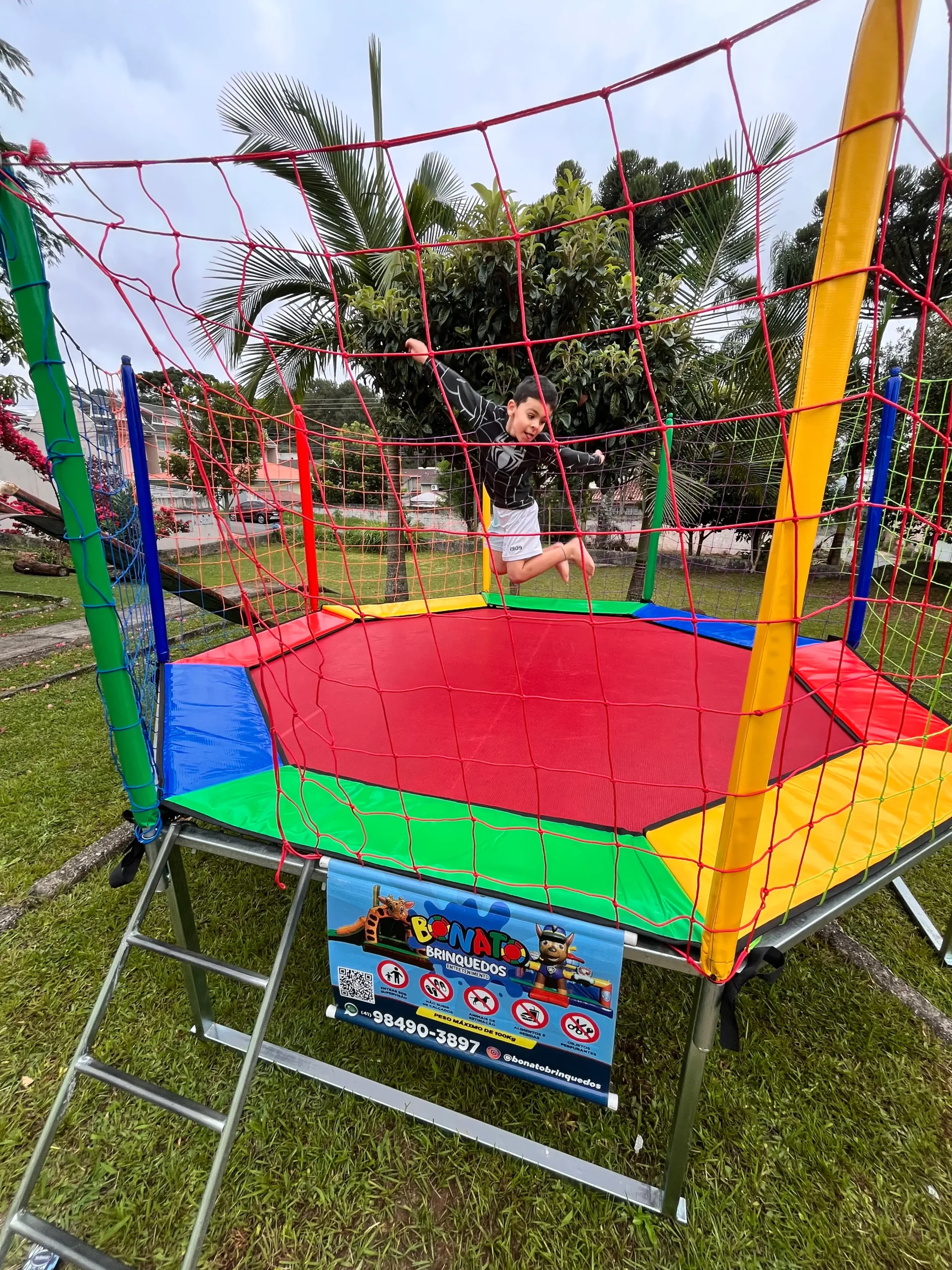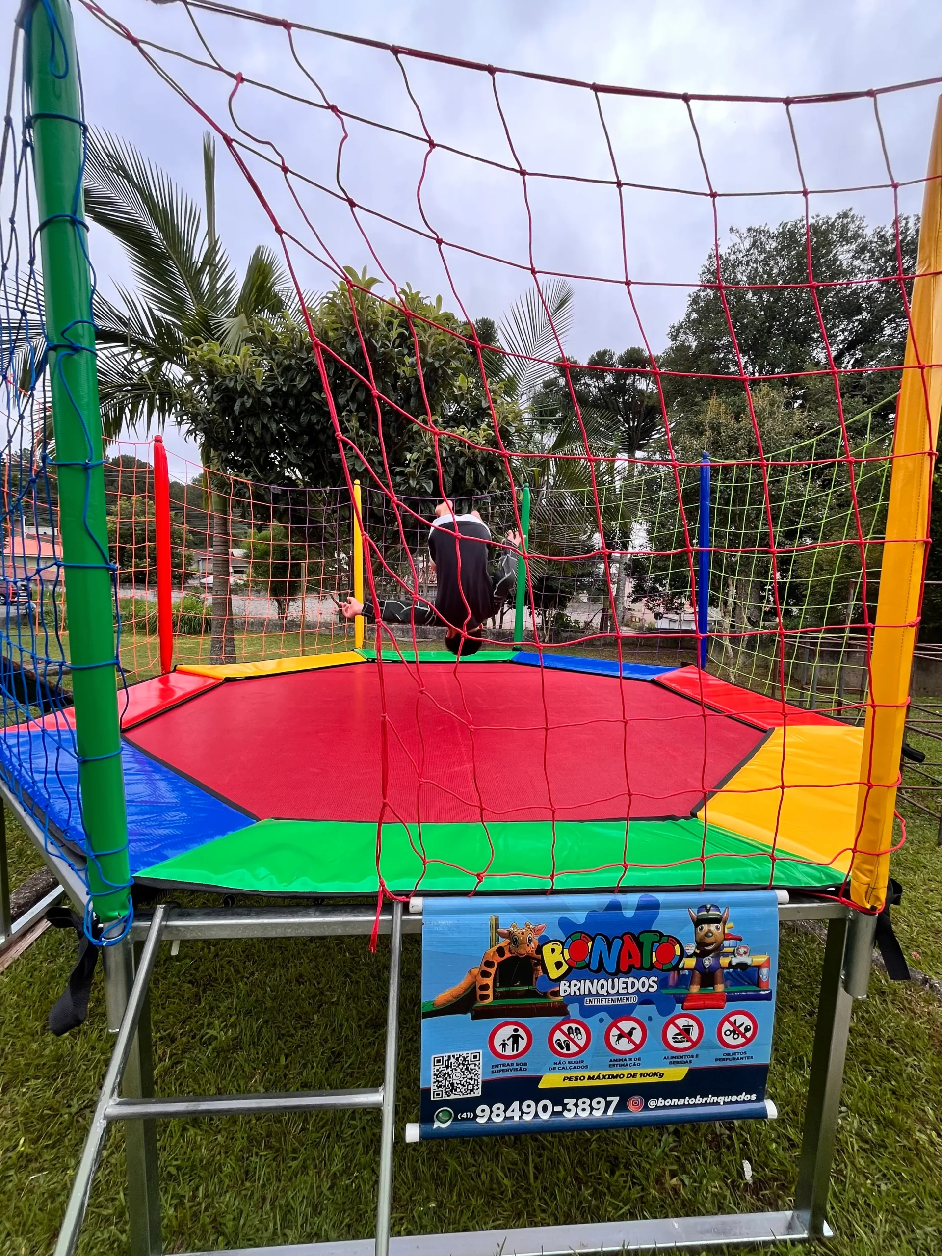 Com estrutura reforçada, rede de proteção e design colorido, essa cama elástica é a escolha perfeita para transformar qualquer evento em uma festa animada e cheia de energia!