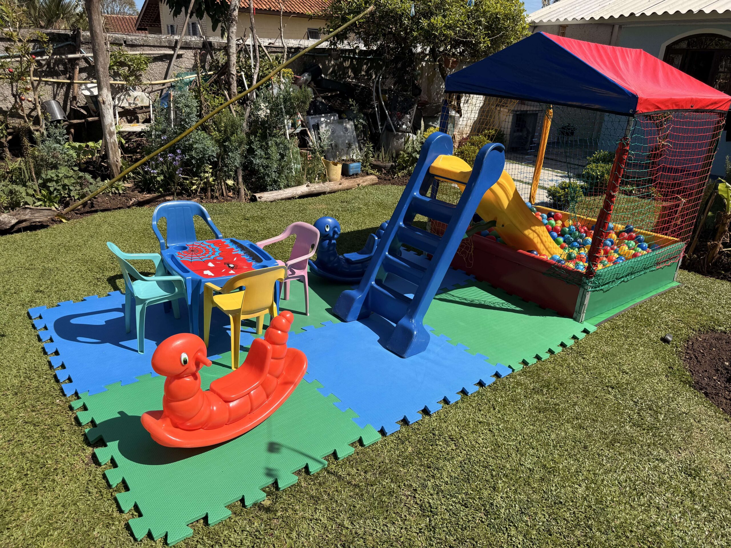 ⚠️ Observação: este brinquedo não pode ser montado em área descoberta ou molhada, pois sua estrutura é de madeira. A montagem deve ser feita somente em área coberta.