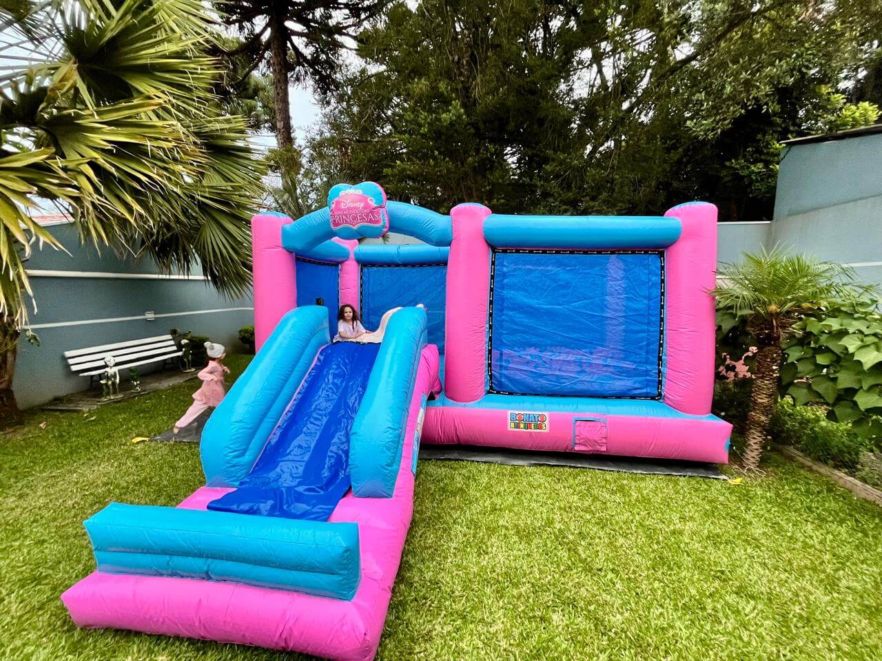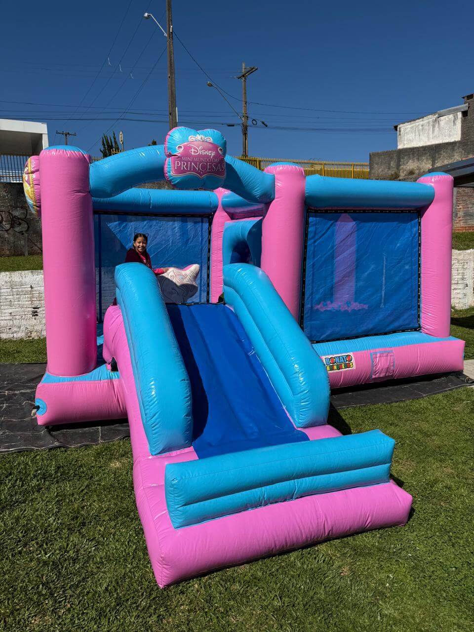 Um castelo encantado de pura diversão! O Multiplay 4 em 1 Princesas é todo rosa com detalhes em azul, trazendo o encanto dos contos de fadas direto para a festa. Nele, as crianças vivem uma experiência mágica com quatro atrações em um só brinquedo: pula-pula, piscina de bolinhas, escorregador e um lindo unicórnio inflável que completa a brincadeira!