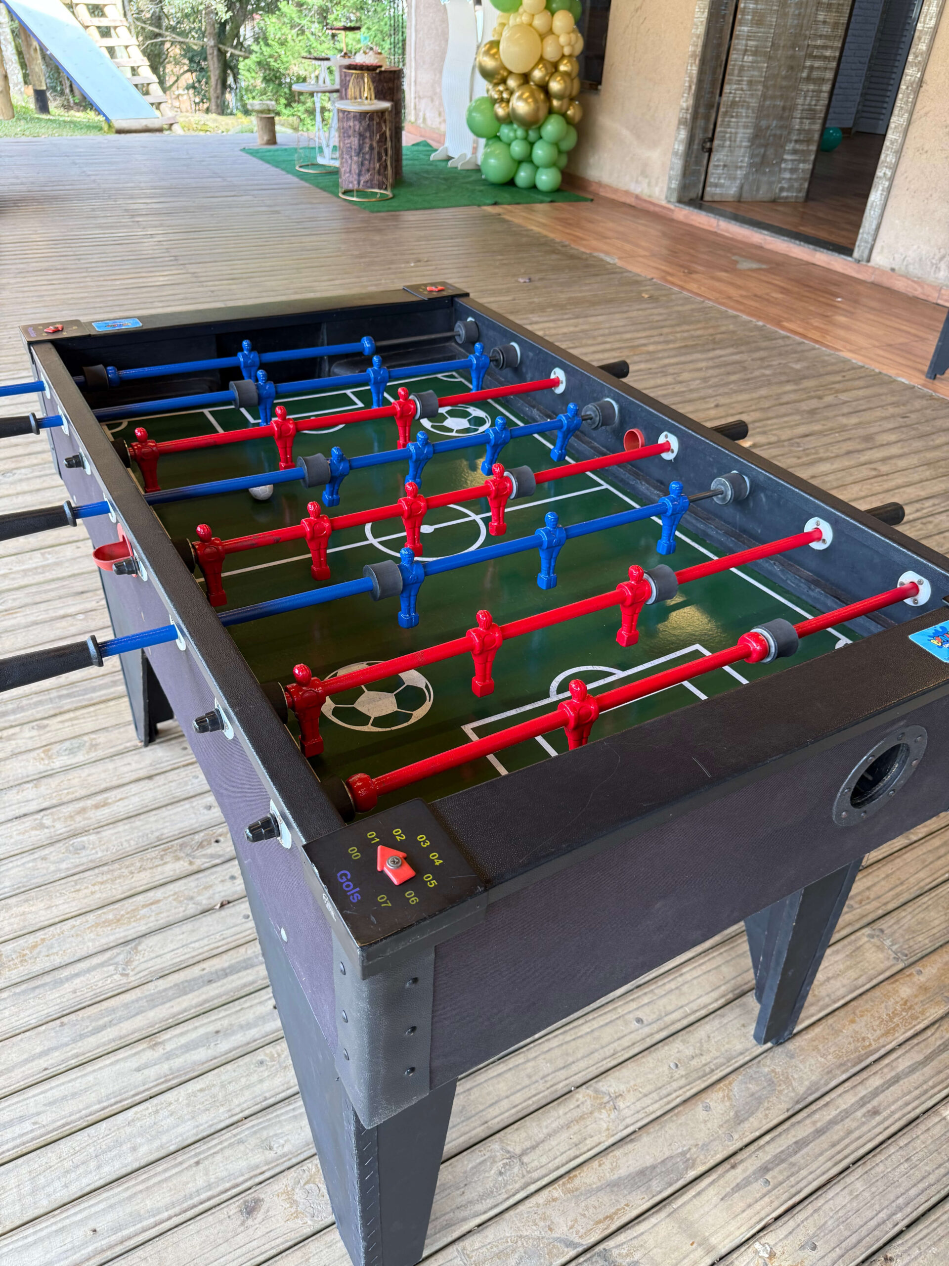 A disputa que não pode faltar na sua festa! Quer animar ainda mais seu evento? O Pebolim é o clássico que garante competição, risadas e muita interação entre amigos e família. Uma disputa emocionante onde só vence quem tiver mais habilidade e reflexo rápido!