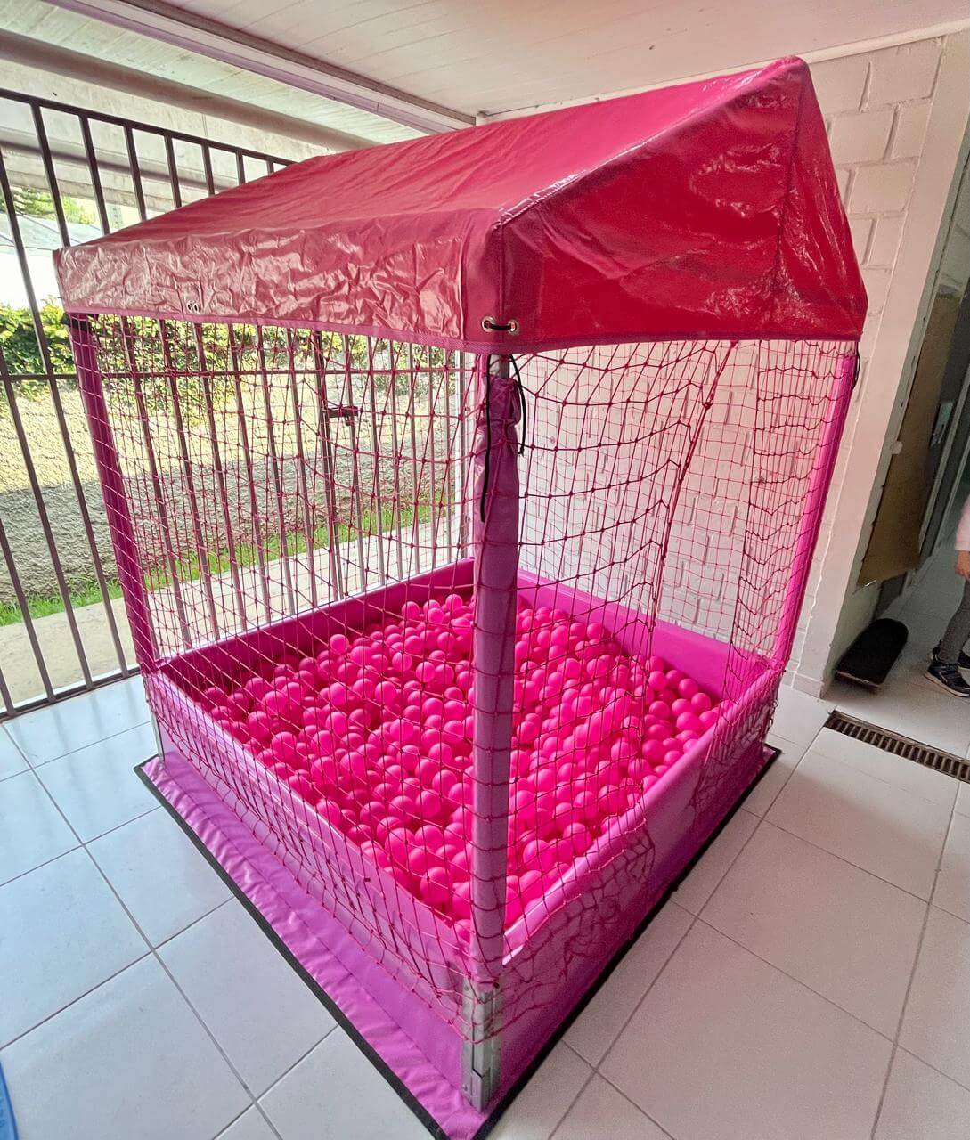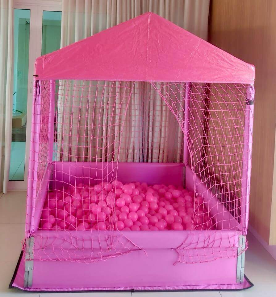 A Piscina de Bolinhas Rosa é perfeita para festas e eventos que buscam um toque de fofura, garantindo muita alegria e interação entre os pequenos.