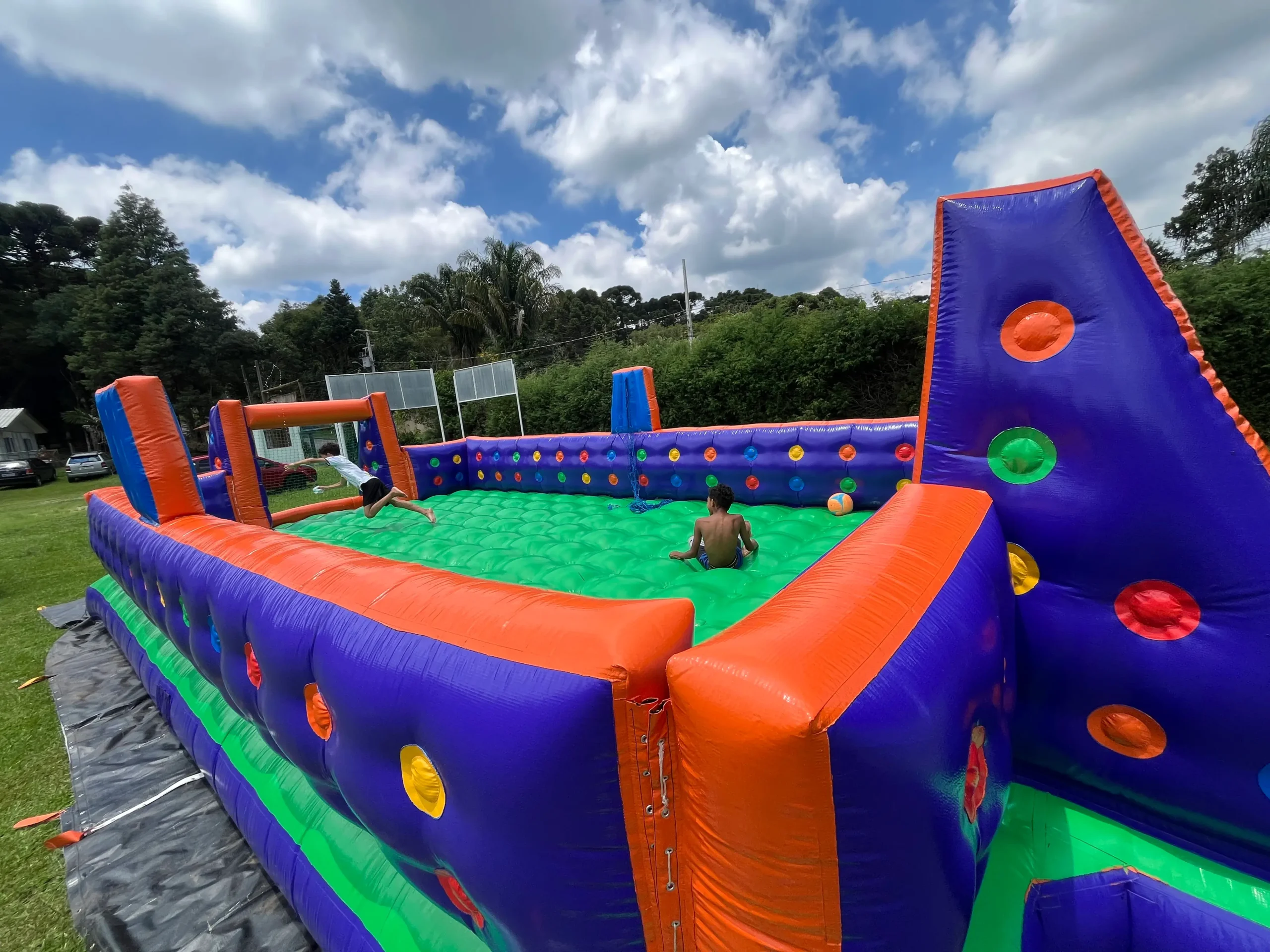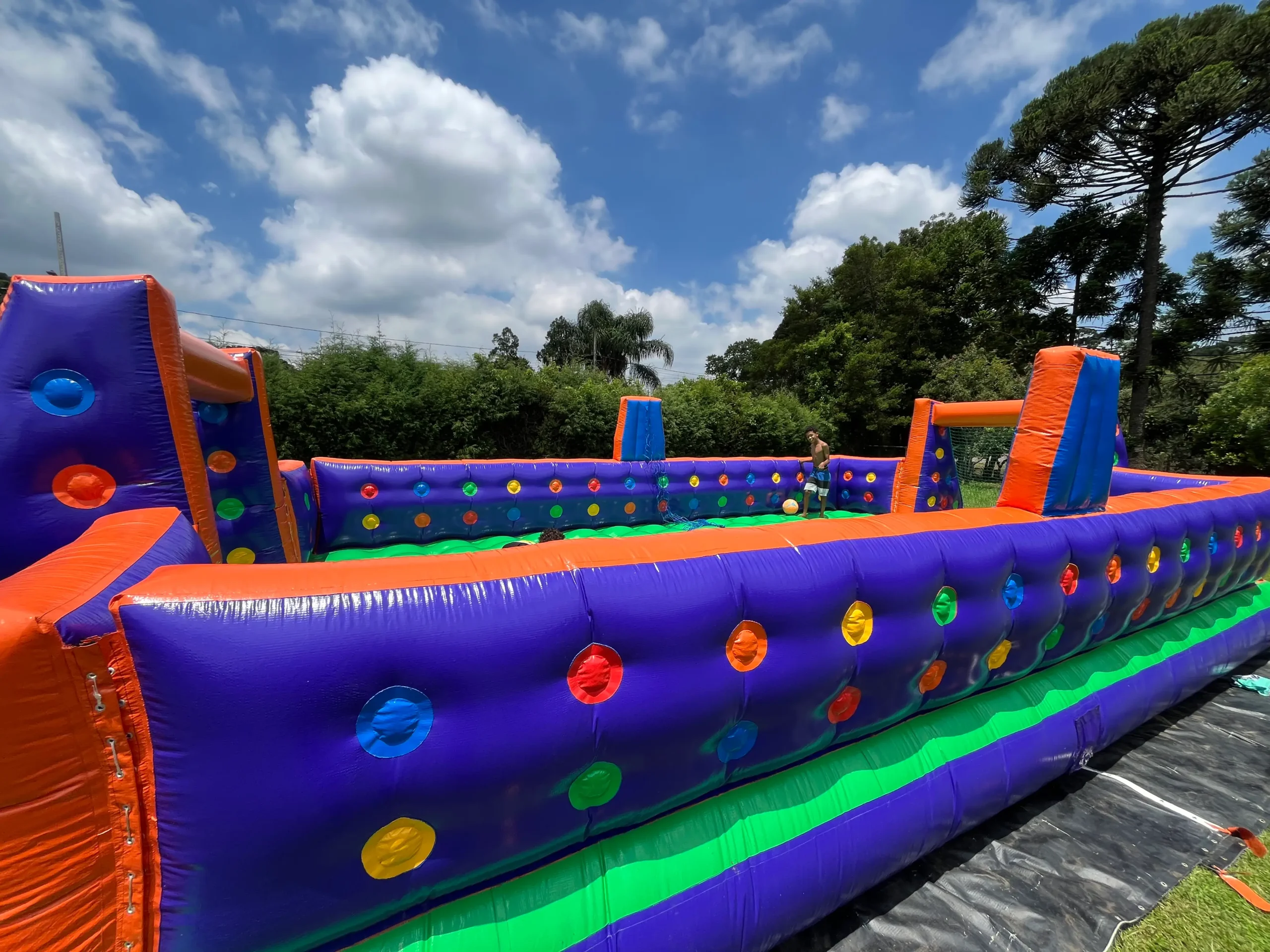 A quadra inflável mais conhecida como Futebol de Sabão ganhou uma versão super divertida e versátil! Nossa Quadra Inflável 2 em 1 permite brincar como futebol ou vôlei, garantindo diversão para todos.