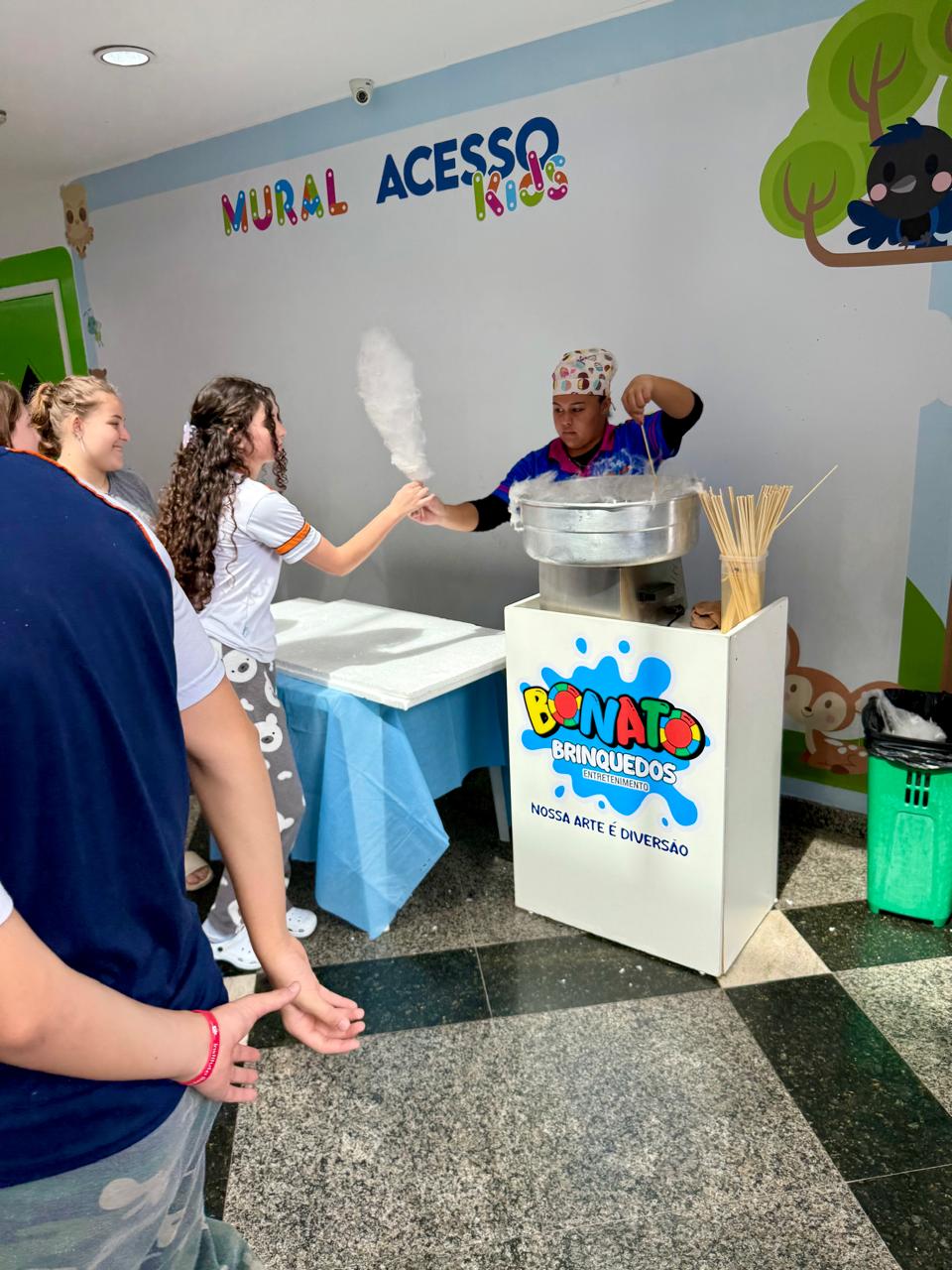Oferecemos o serviço de algodão doce livre, preparado na hora por um atendente especializado, garantindo qualidade, higiene e aquele toque de magia que encanta crianças e adultos.